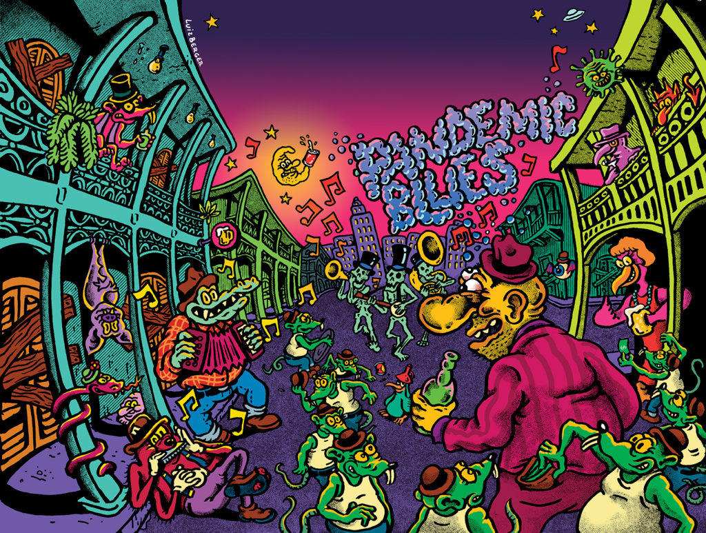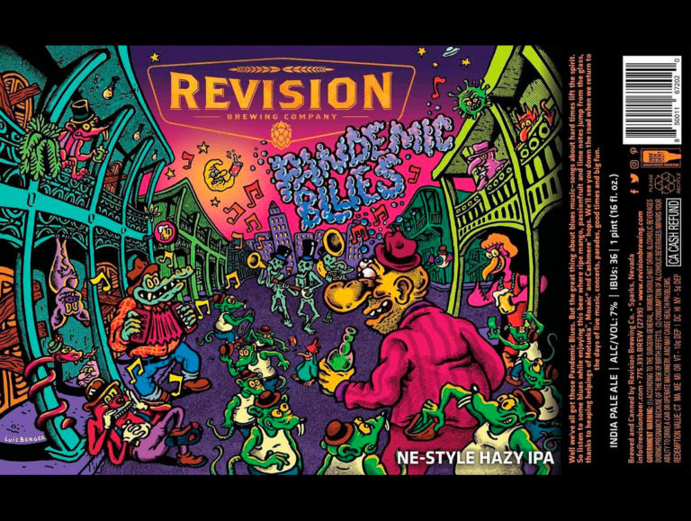 Artwork for the Pandemic Blues beer label, from Revision Brewing