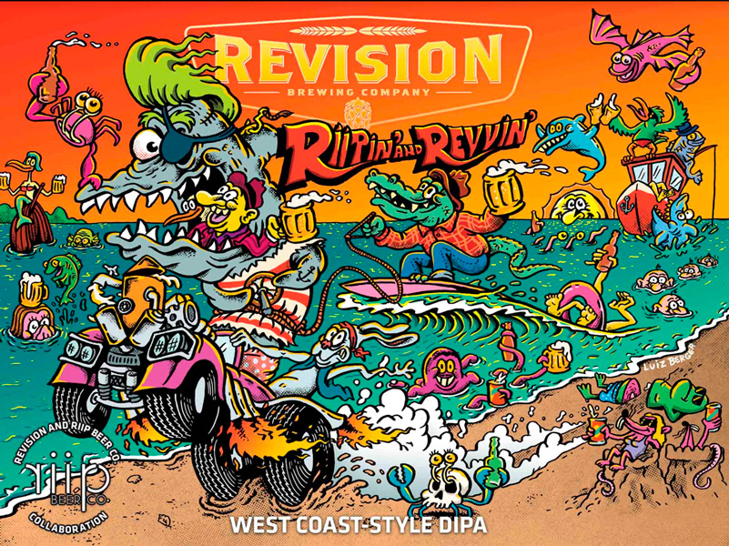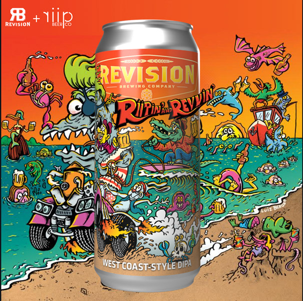 Riipin' and Revvin' beer label for a collab between @revisionbrewing and @riipbeer
