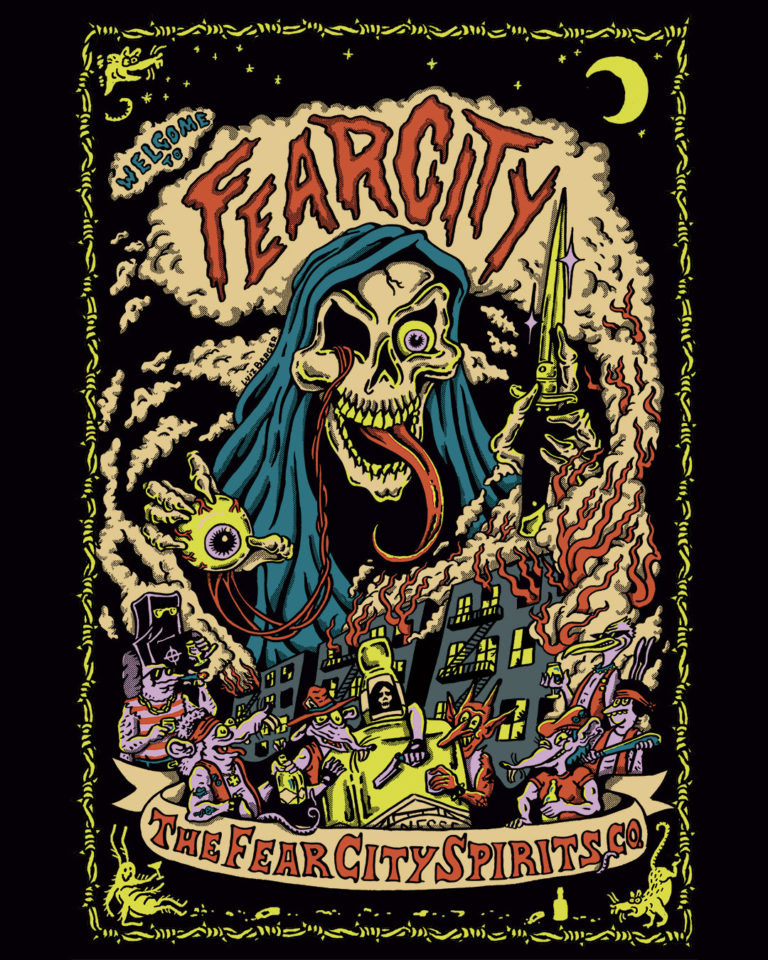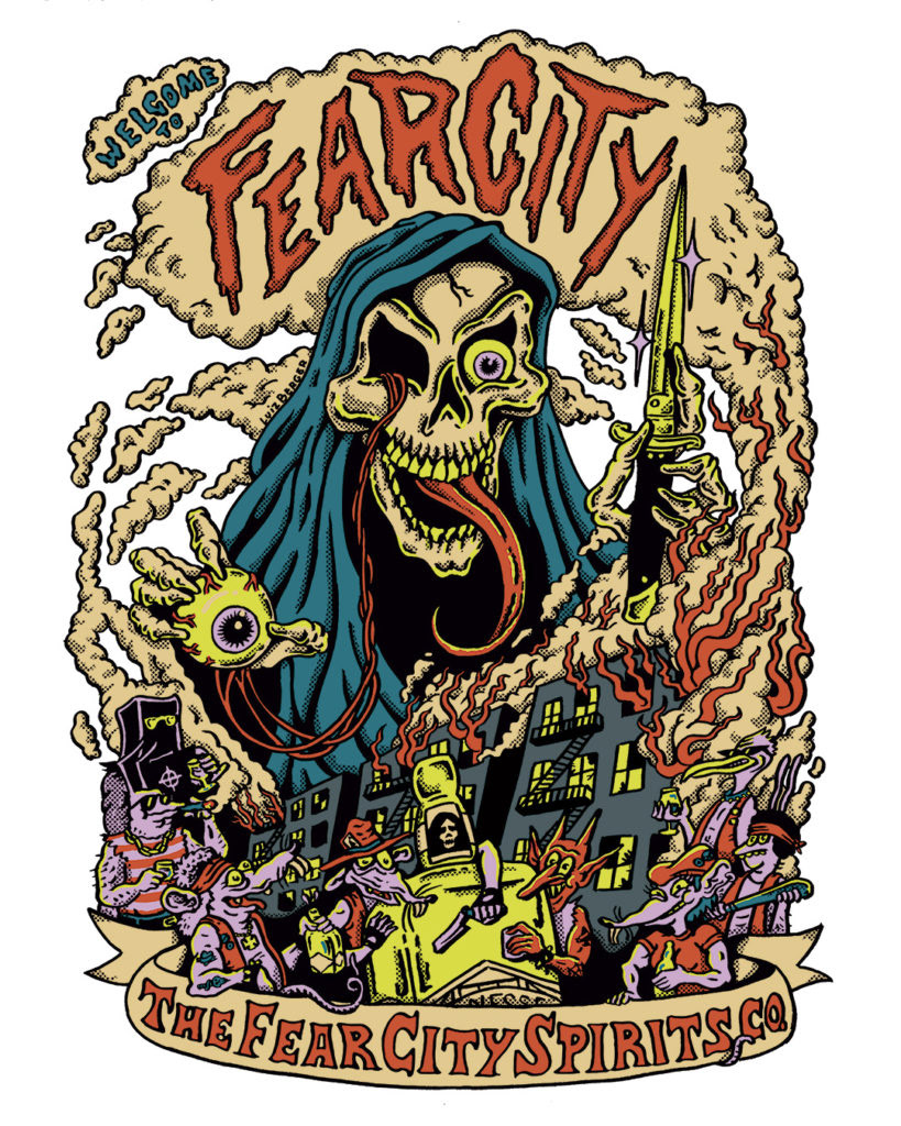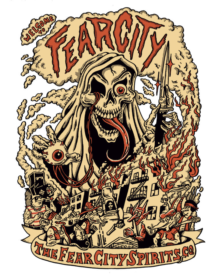 Artwork for poster and t-shirt for The Fear City Spirits Co.